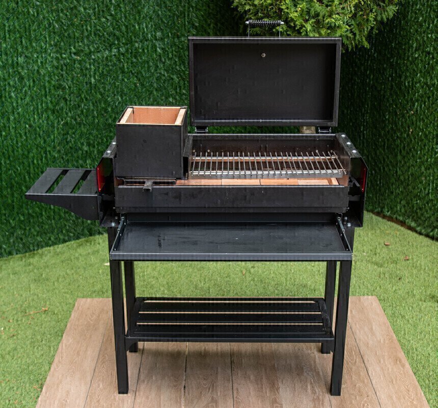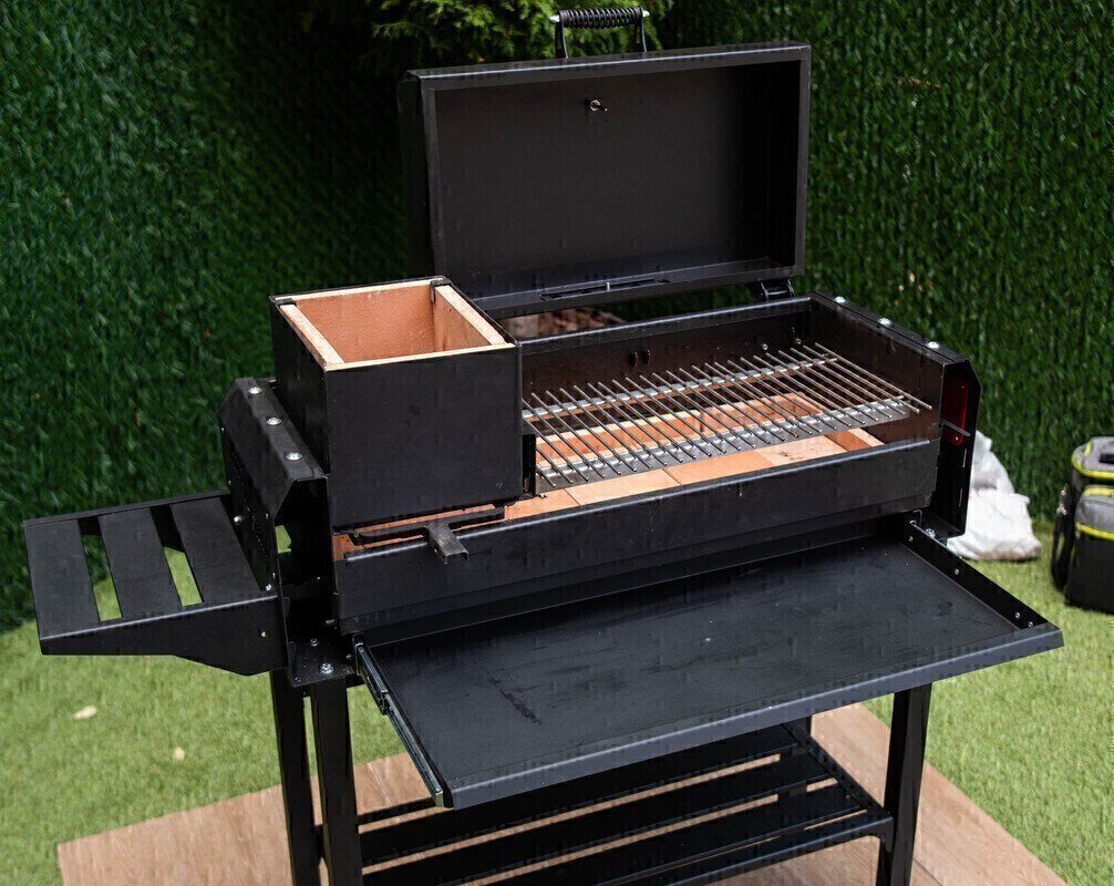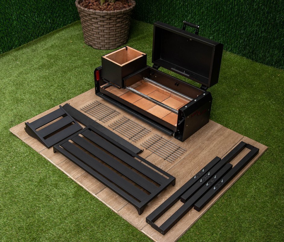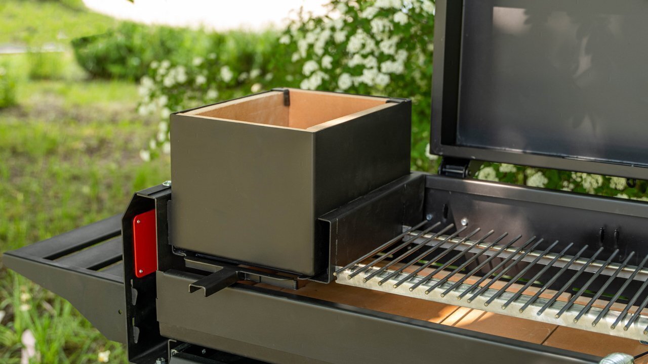 В этом гриле легко добавлять угли в процессе готовки или убирать их в сторону. За счет эффективного распределения тепла требуется меньше углей по сравнению с обычным металлическим мангалом. Можно использовать как покупные угли, так и сделать свои из деревянных поленьев. Закрывающаяся крышка обеспечивает равномерный прогрев со всех сторон: жар воздействует на продукты снизу и сверху, отражаясь от внутренней поверхности крышки. Закрытая крышка также ограничивает доступ кислорода, снижая риск возгорания и пригорания пищи.