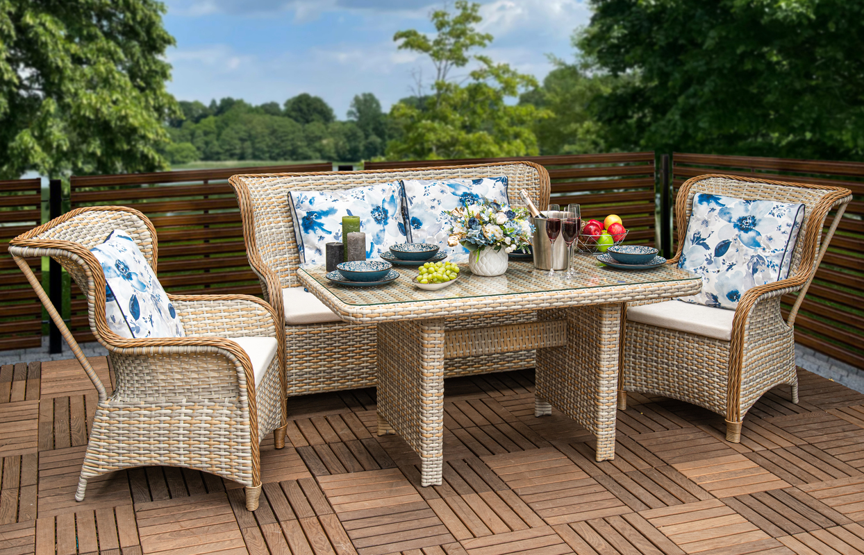 Различные виды плетеной мебели – кресла, диваны, столы можно найти в нашем каталоге. Они помогут создать атмосферу беззаботности и комфорта.