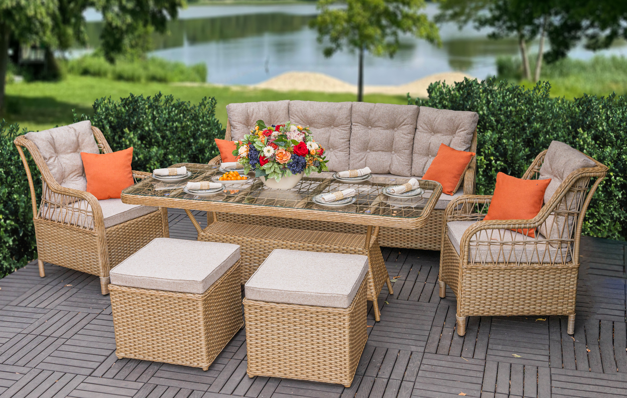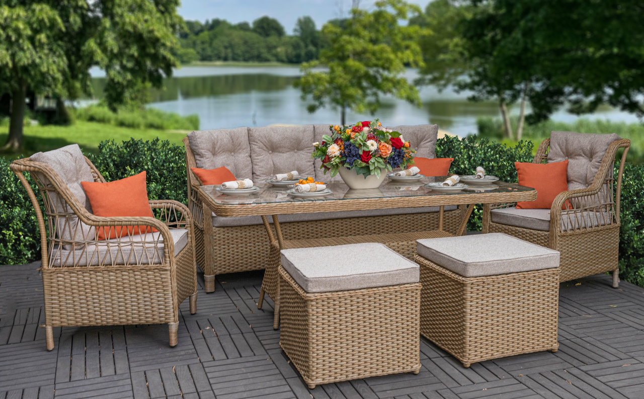 Различные виды плетеной мебели – кресла, диваны, столы можно найти в нашем каталоге. Они помогут создать атмосферу беззаботности и комфорта.