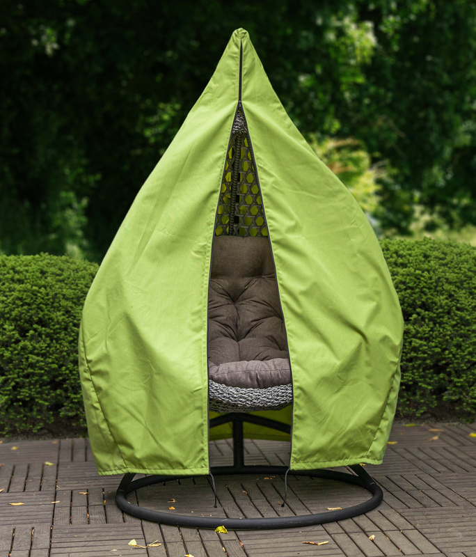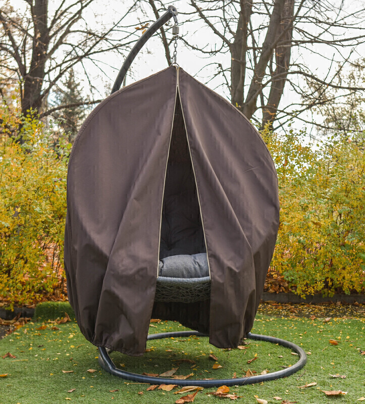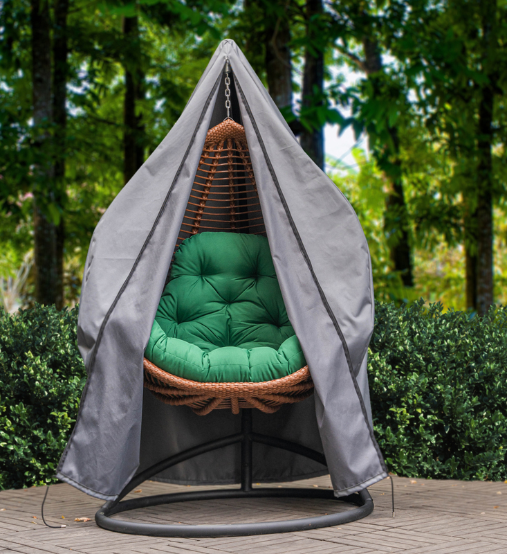 Чехол сделан и прочного материала, способен отталкивать воду. Хотя искусственный ротанг способен долгие годы сохранять внешний облик, но дополнительная защита будет не лишней. Особенно важен будет чехол для изделий, стоящих круглый год на улице. Защитный материал полностью закрывает кресло.