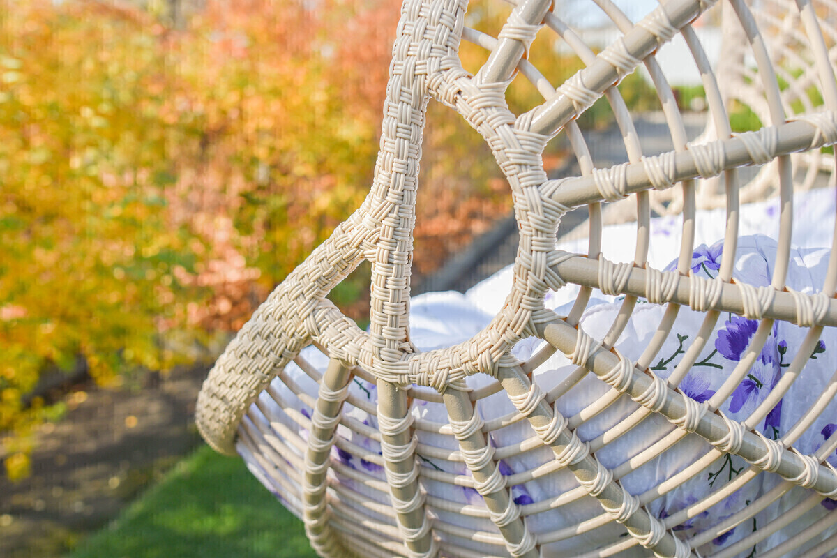 Плетение кресла мы выполняем из искусственного ротанга, стойкого материала, который не поддается негативному воздействию прямых солнечных лучей, температурных колебаний.