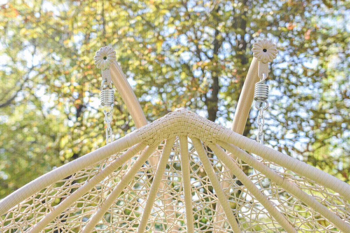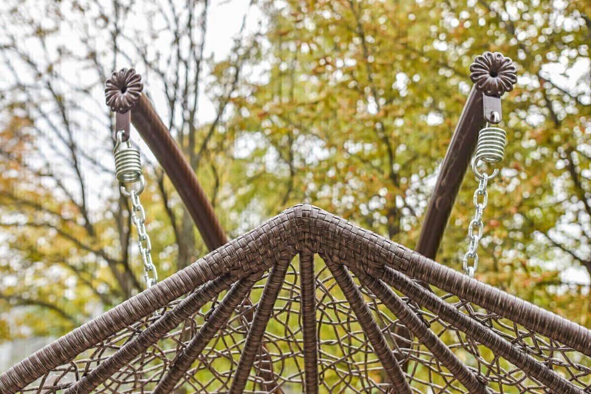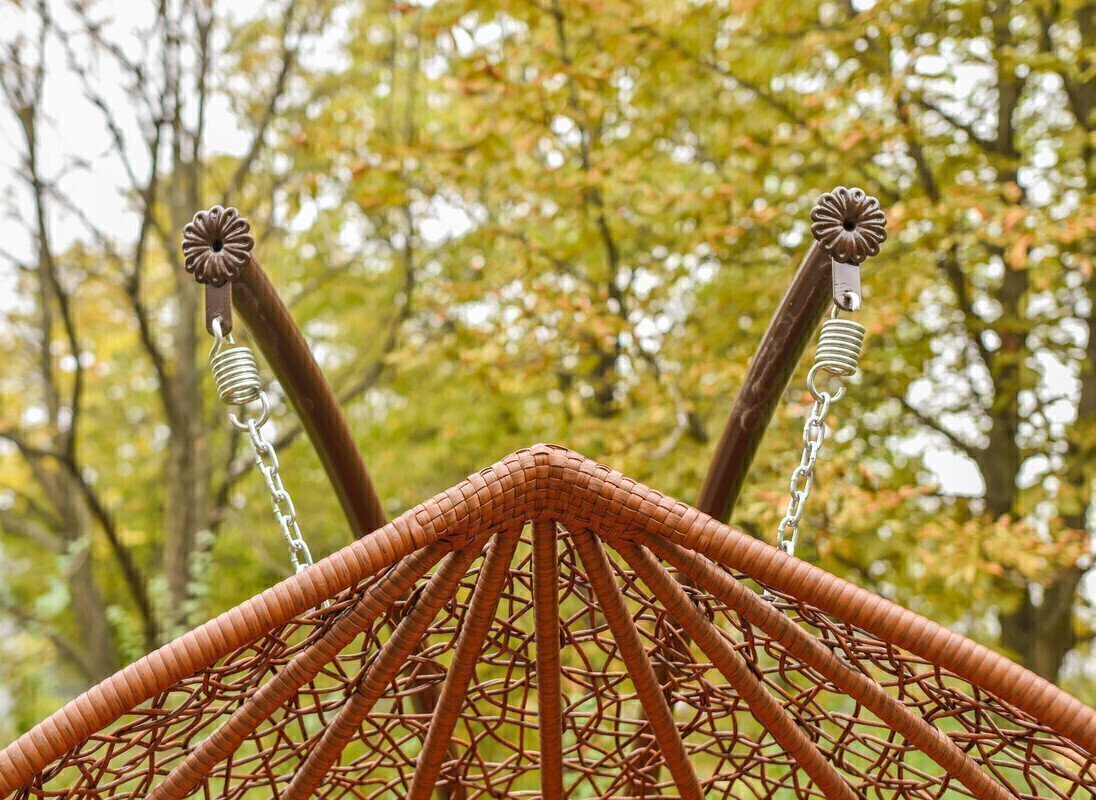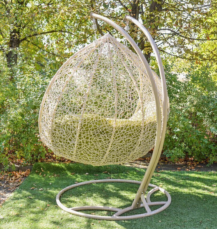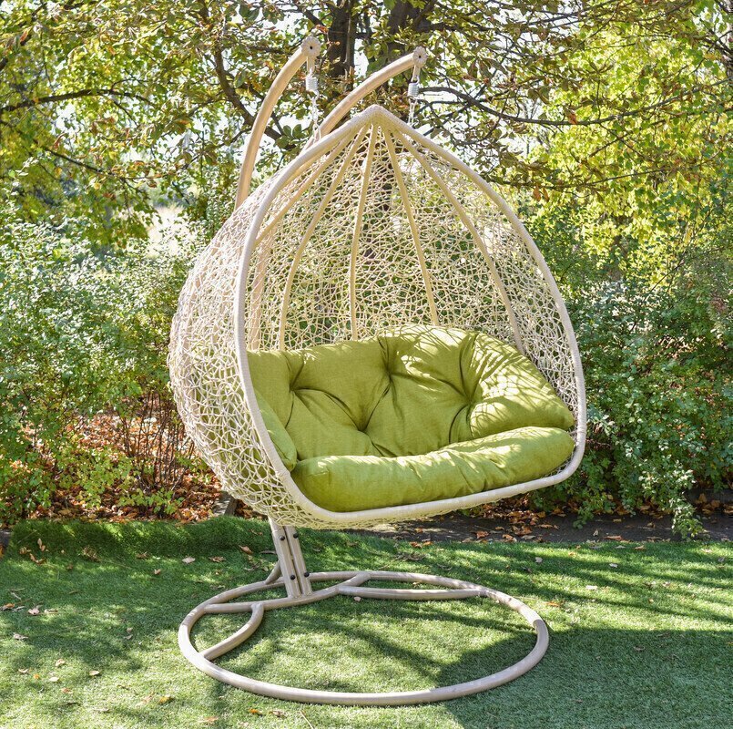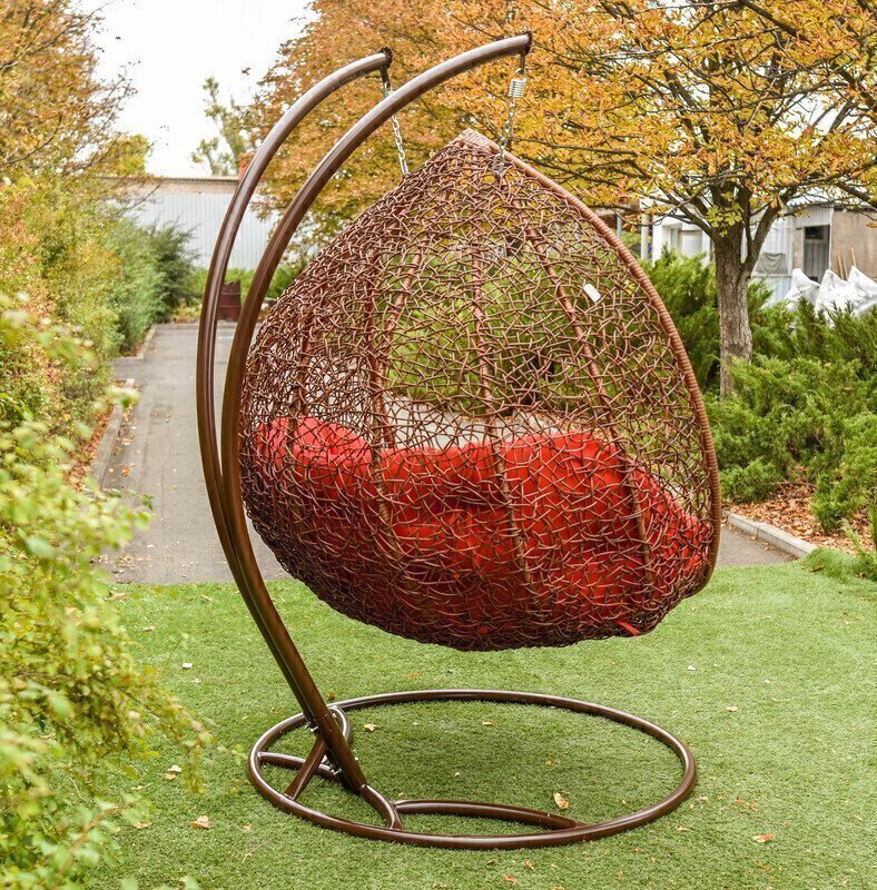 Кресло можно установить в саду и наслаждаться отдыхом в тени деревьев.