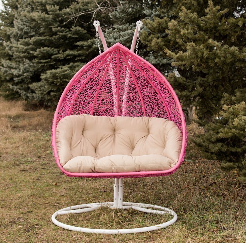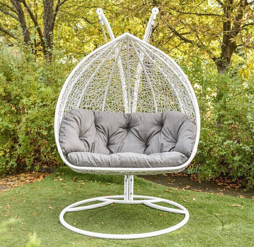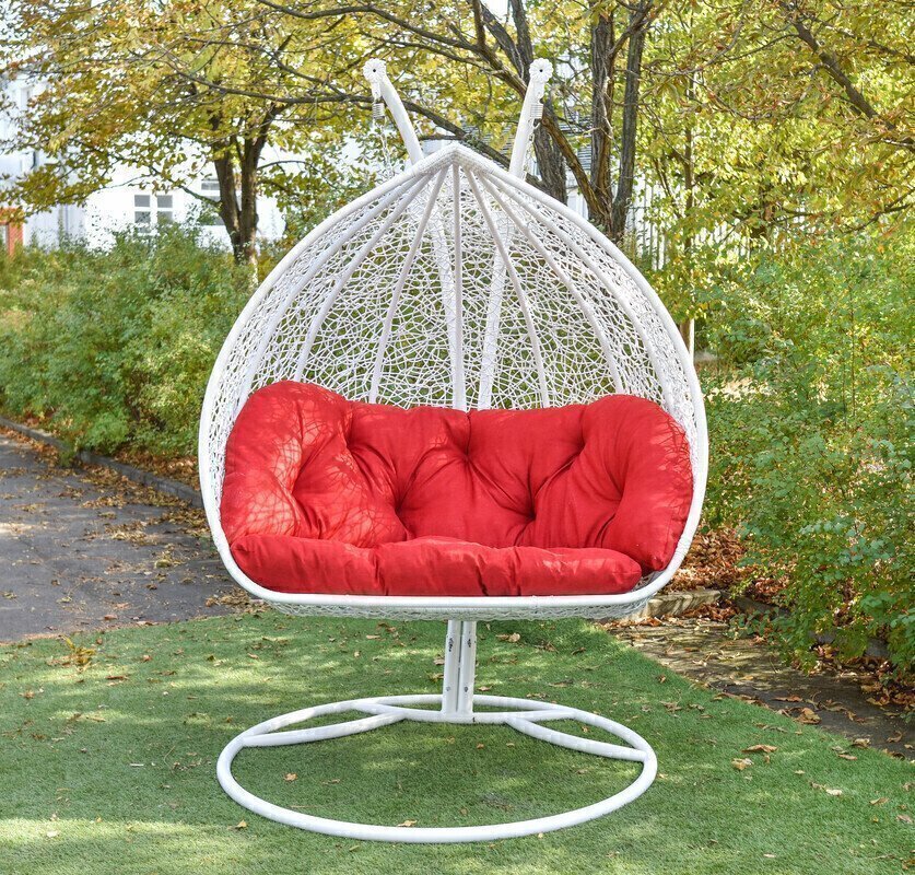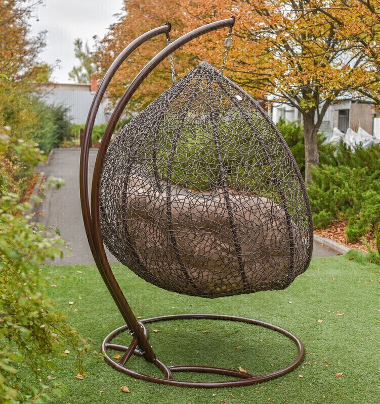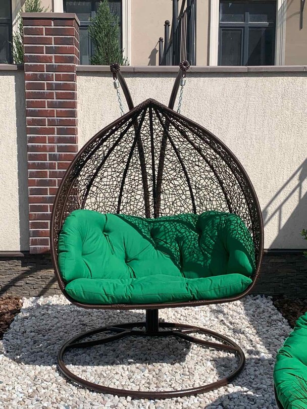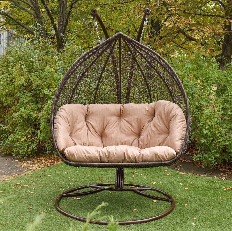 Очень стильное и модное кресло кокон для двоих, способно украсить любой сад. Данная модель рассчитана на двух взрослых человек. Плетение ажурное, не объемное.