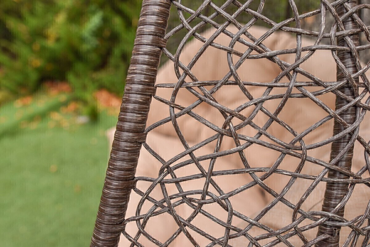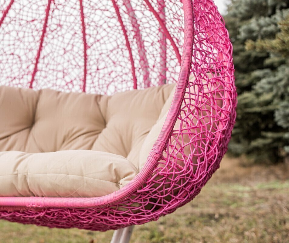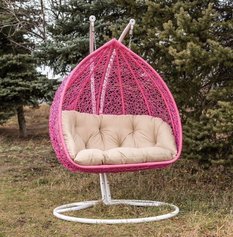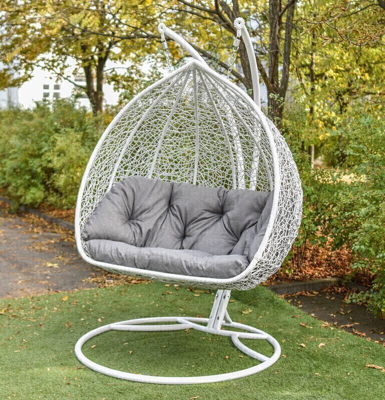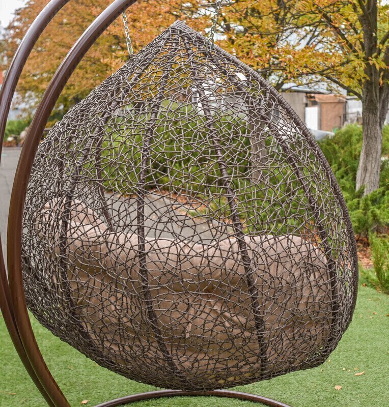 Очень стильное и модное кресло кокон для двоих, способно украсить любой сад. Данная модель рассчитана на двух взрослых человек. Плетение ажурное, не объемное.
