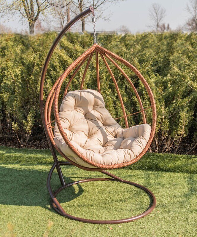 Кресло кокон идет в комплекте с подушкой – ее стоимость входит в цену товара. Красивый и практичный декор подушки из габардиновой ткани, наполнение экологически чистым наполнителем синтепух, делают ее мягкой и удобной, максимально комфортной для отдыха.