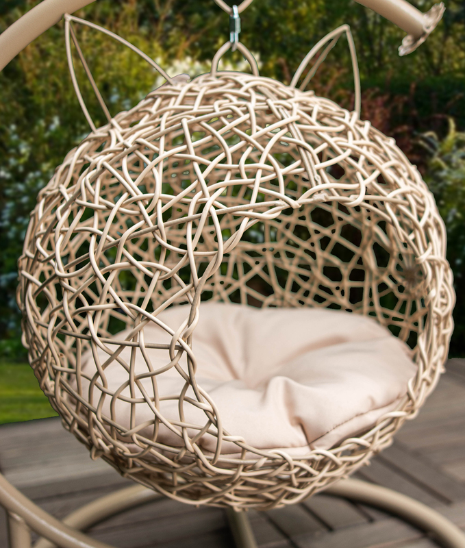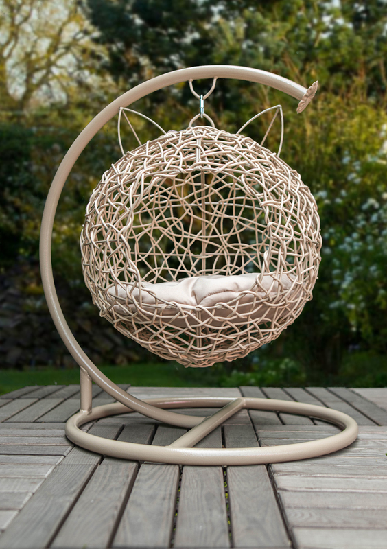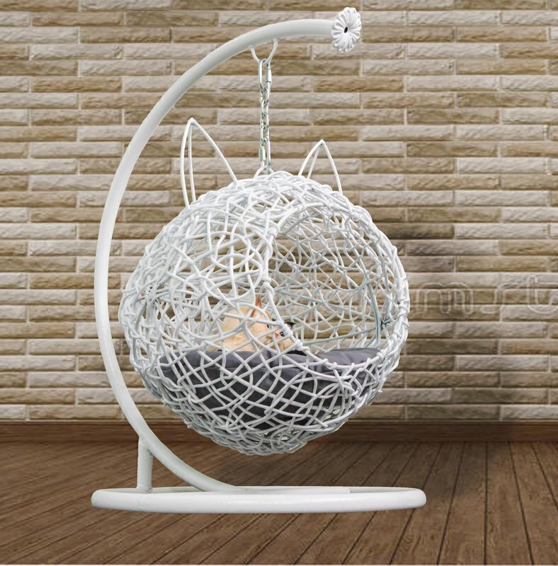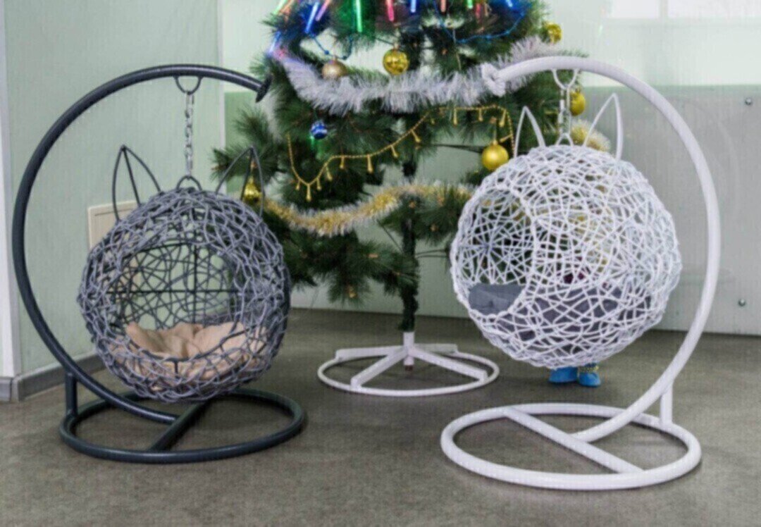 Эта модель создана специально для домашнего питомца. Шарообразная форма с милыми ушками привлекает внимание. Кошке будет удобно в таком кресле. Сделана она наподобие ёлочного шарика.