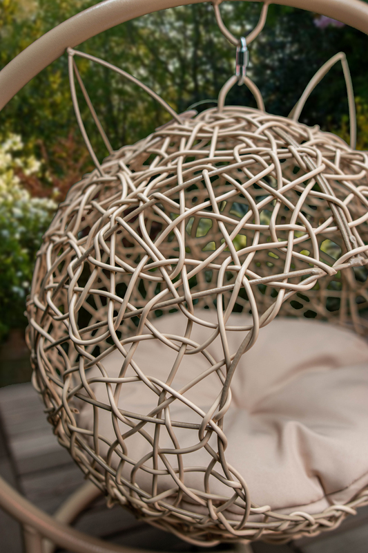 Плетение кресла мы выполняем из искусственного ротанга, стойкого материала, который не поддается негативному воздействию прямых солнечных лучей, температурных колебаний.