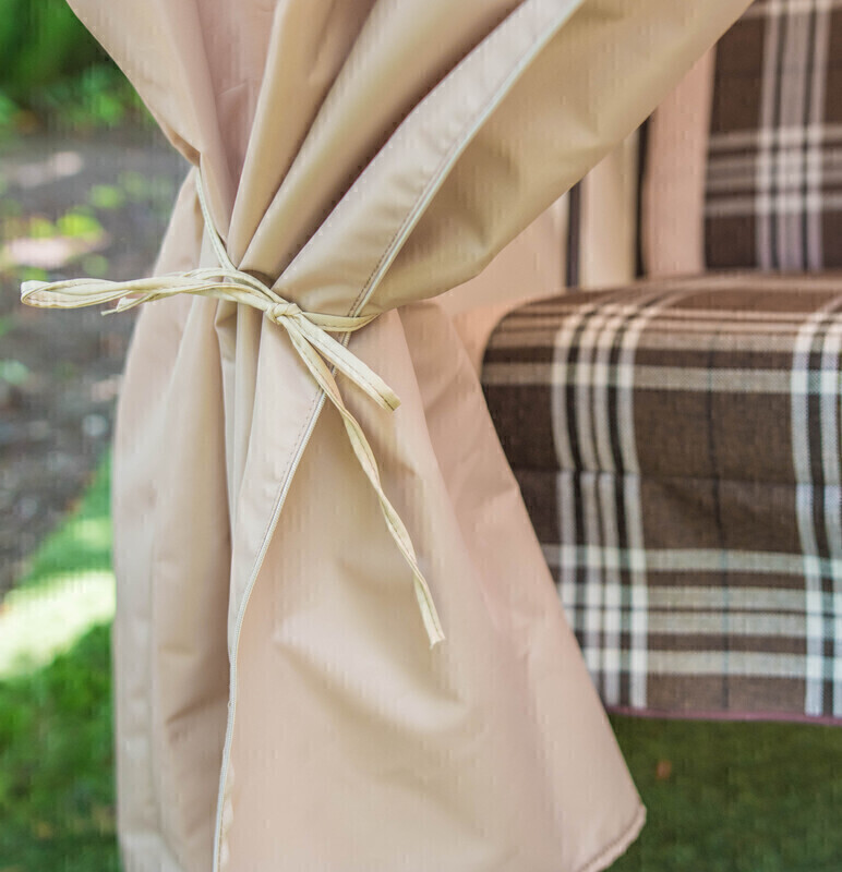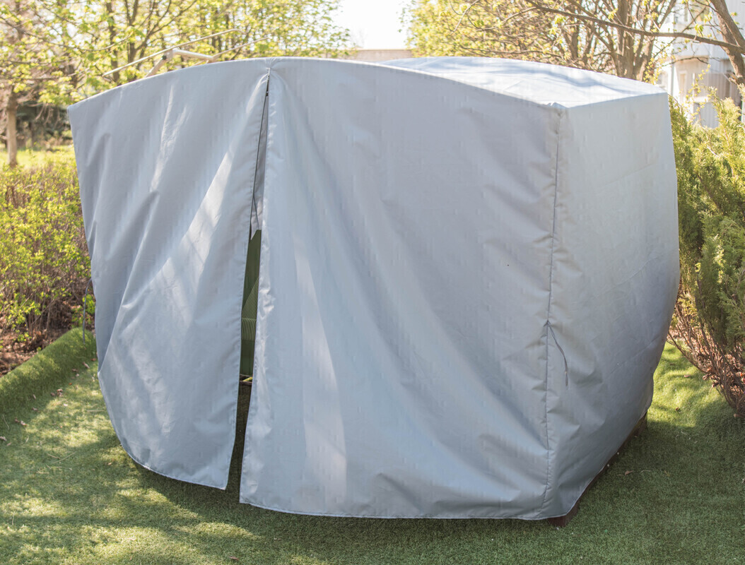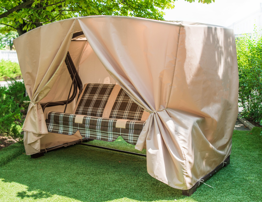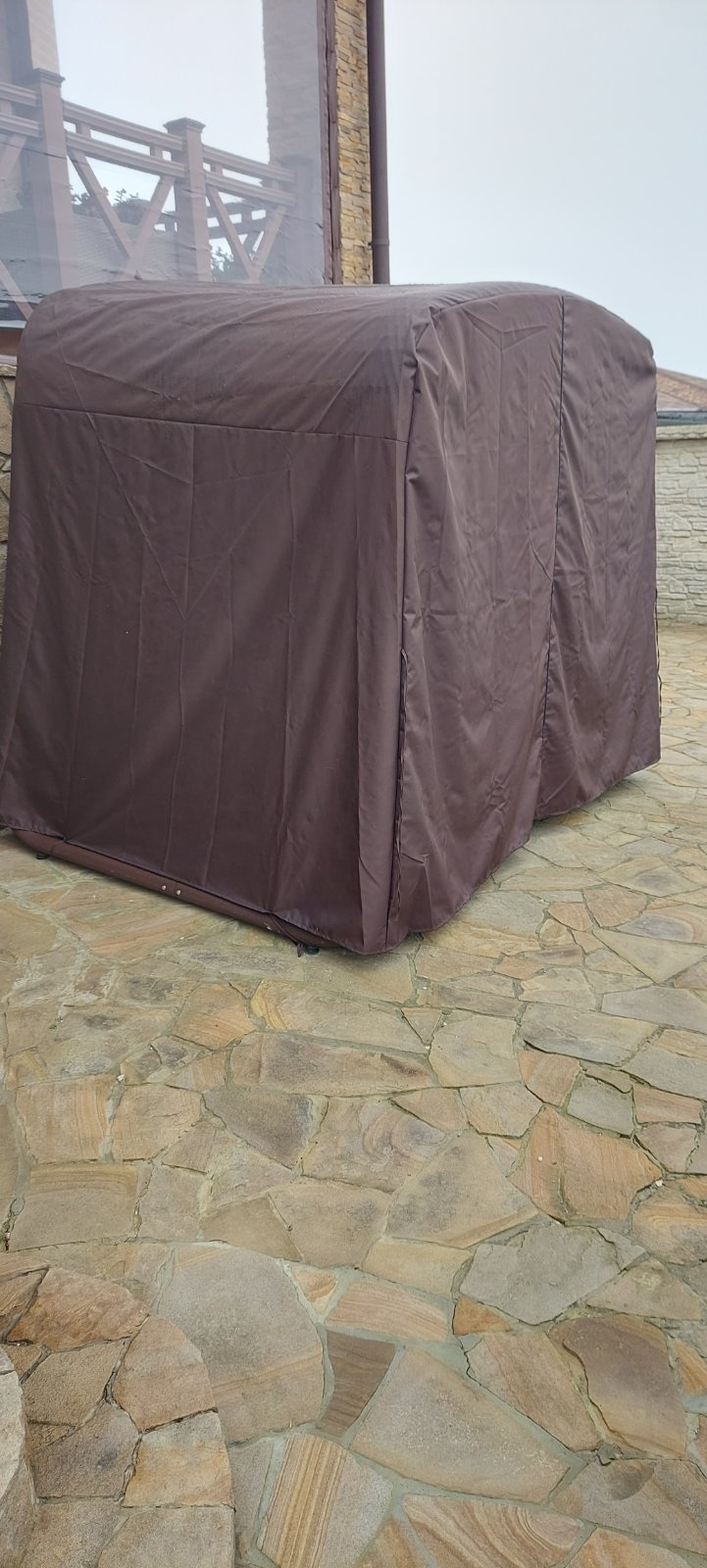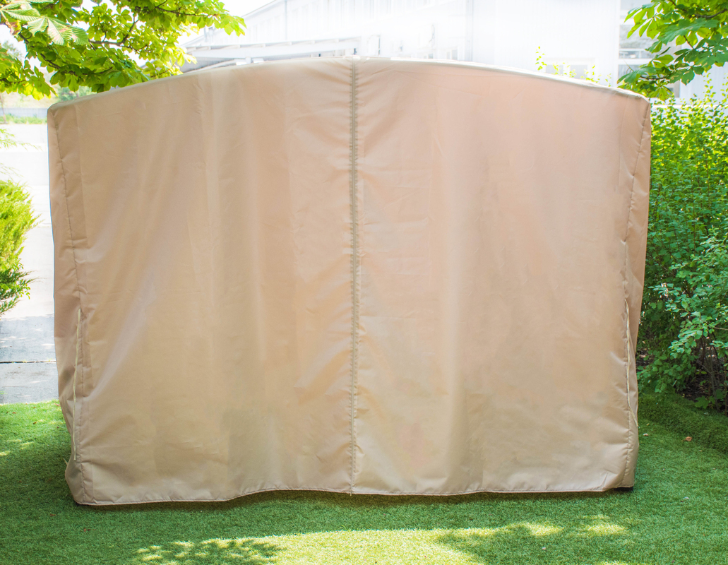 Чехол на садовые металлические качели сделан из ткани, которая не пропускает влагу и надежно защищает металлические детали изделия от коррозии.