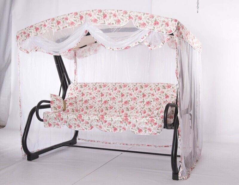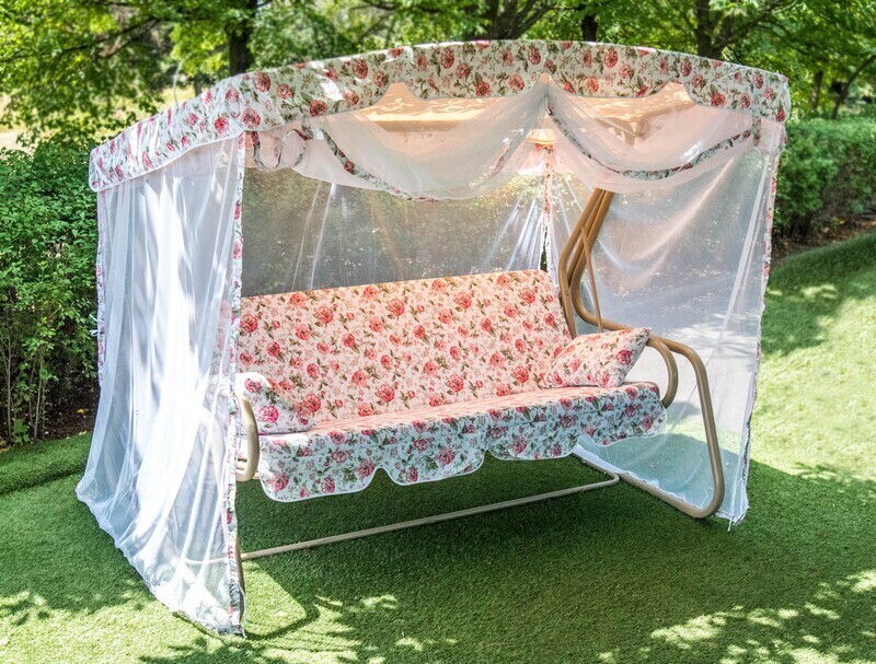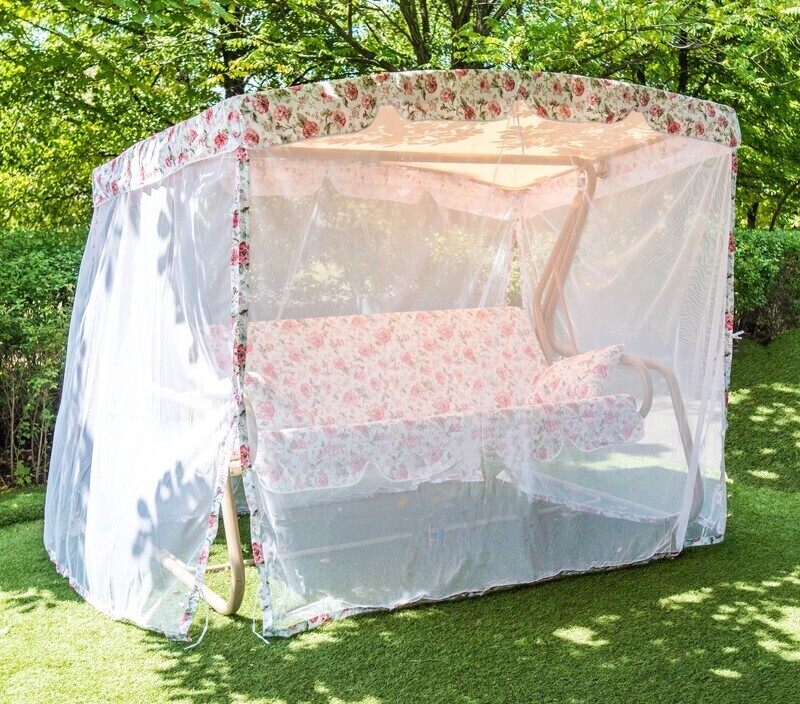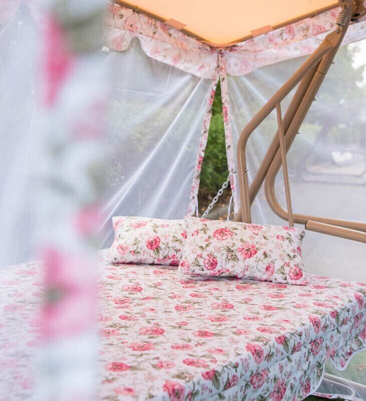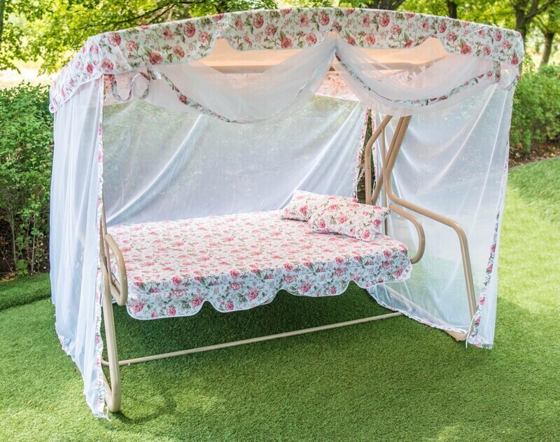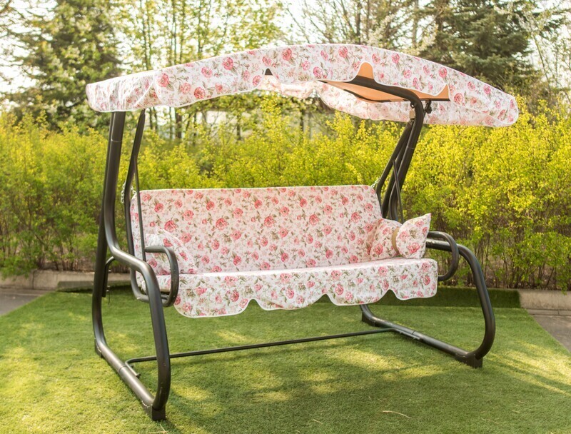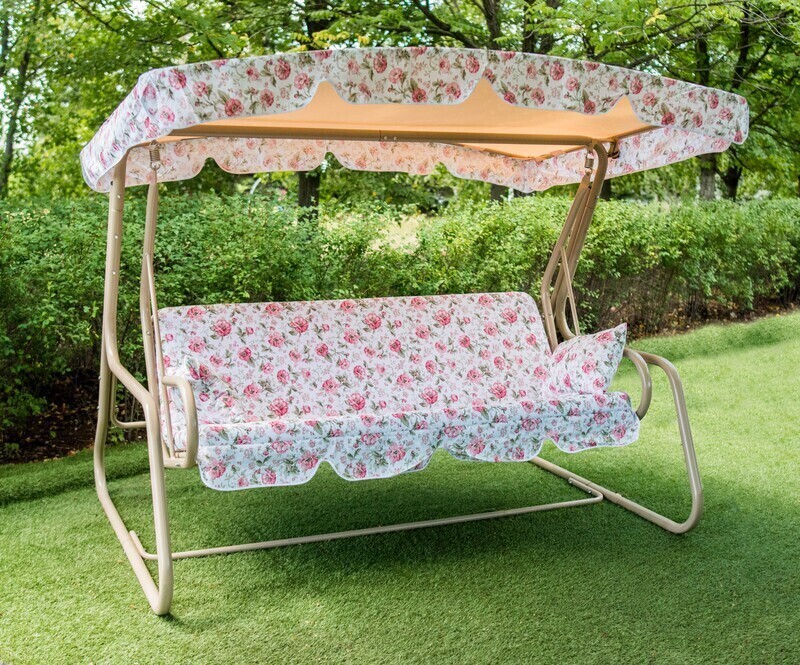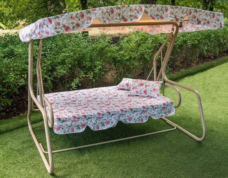 Качеля садовая раскладная Аризона оформлена в стиле Прованс, обивка из белой ткани в мелкий цветок создает романтическое настроение во время катания. Качеля станет достойным украшением дачного участка, любимым местом отдыха детей и взрослых.