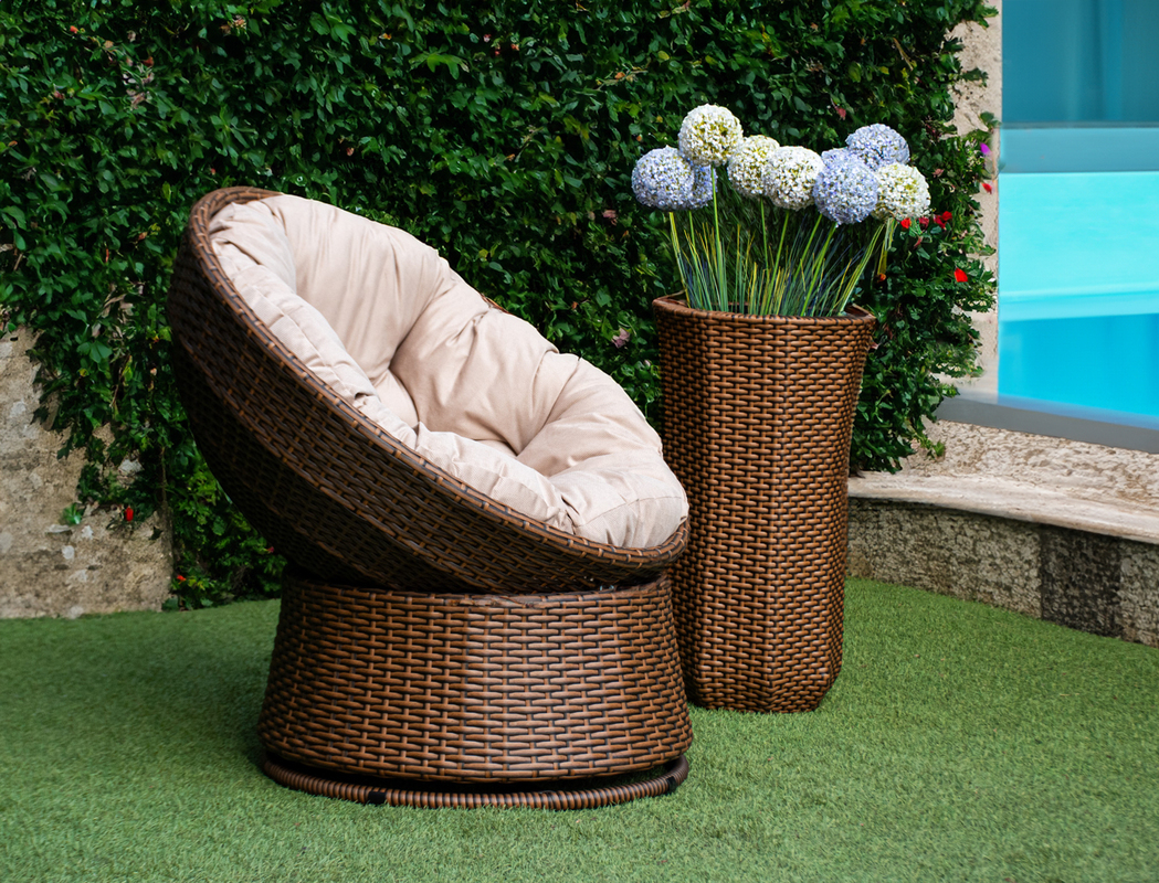 Ротанговим меблям властива легкість, міцність. Крім того, вони не схильні до впливу вологи і не розсихаються. Кожен предмет меблів унікальний як за забарвленням, так по оформленню і по виду плетіння. Такі меблі успішно поєднують в собі природну чистоту і передові технології. Плетені меблі часто використовуються і в інтер'єрі заміських будинків. Дуже комфортно розташуватися в такому кріслі біля басейну або на веранді.