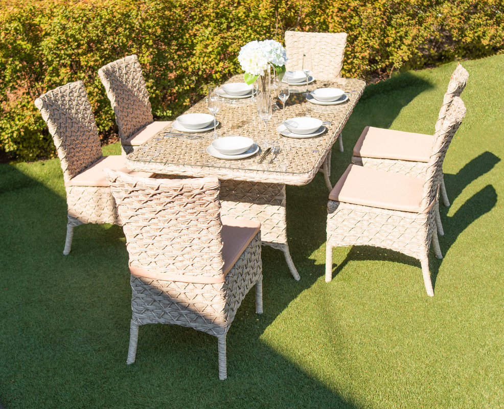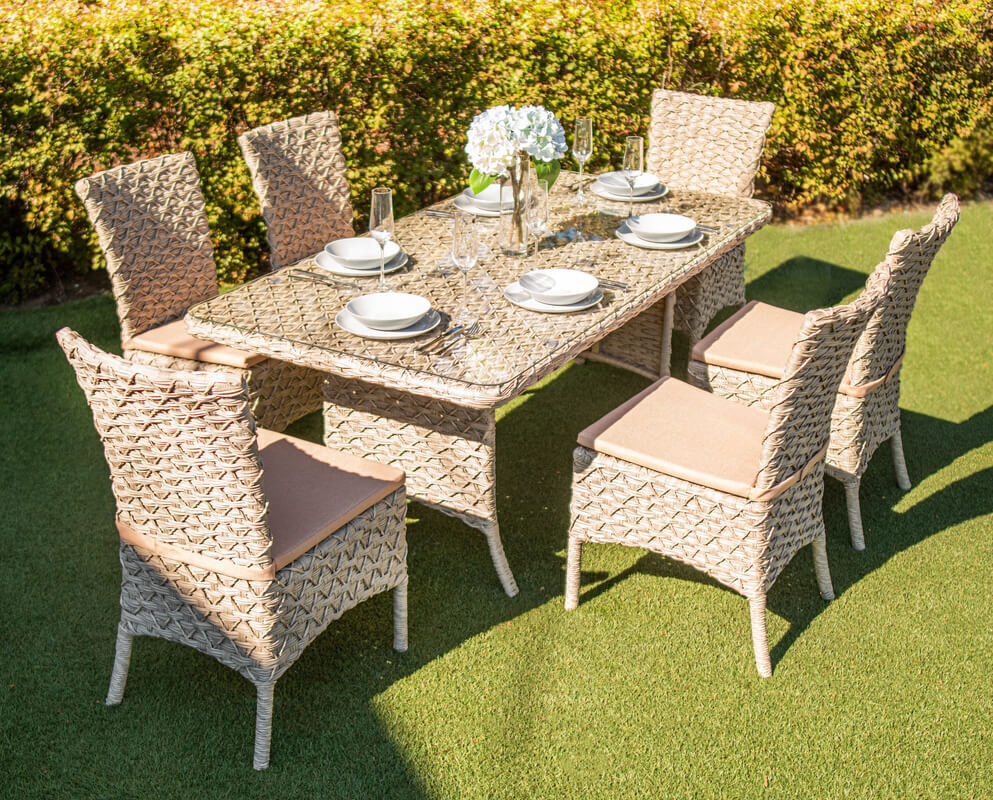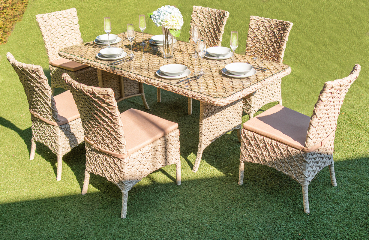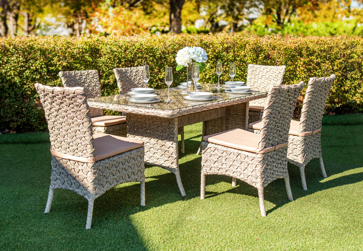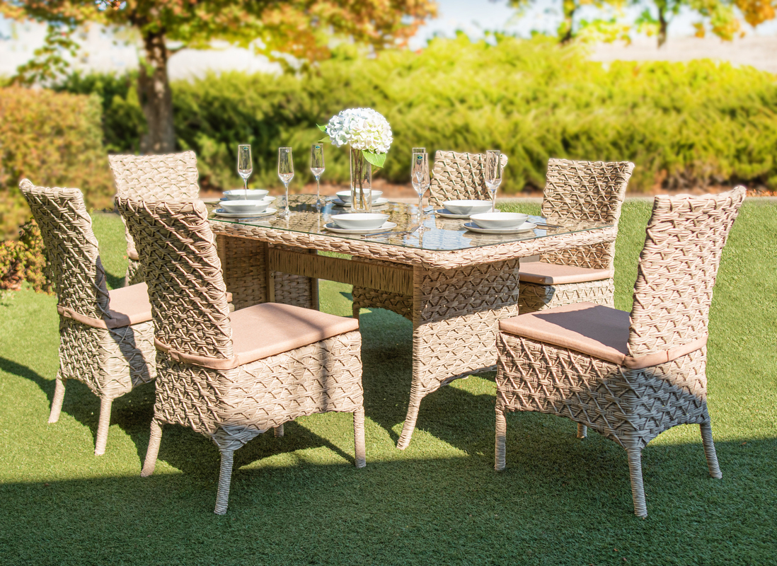 Меблі зі штучного ротангу "Ровенна" складаються з шести стільців та столу зі стільницею із загартованого скла.