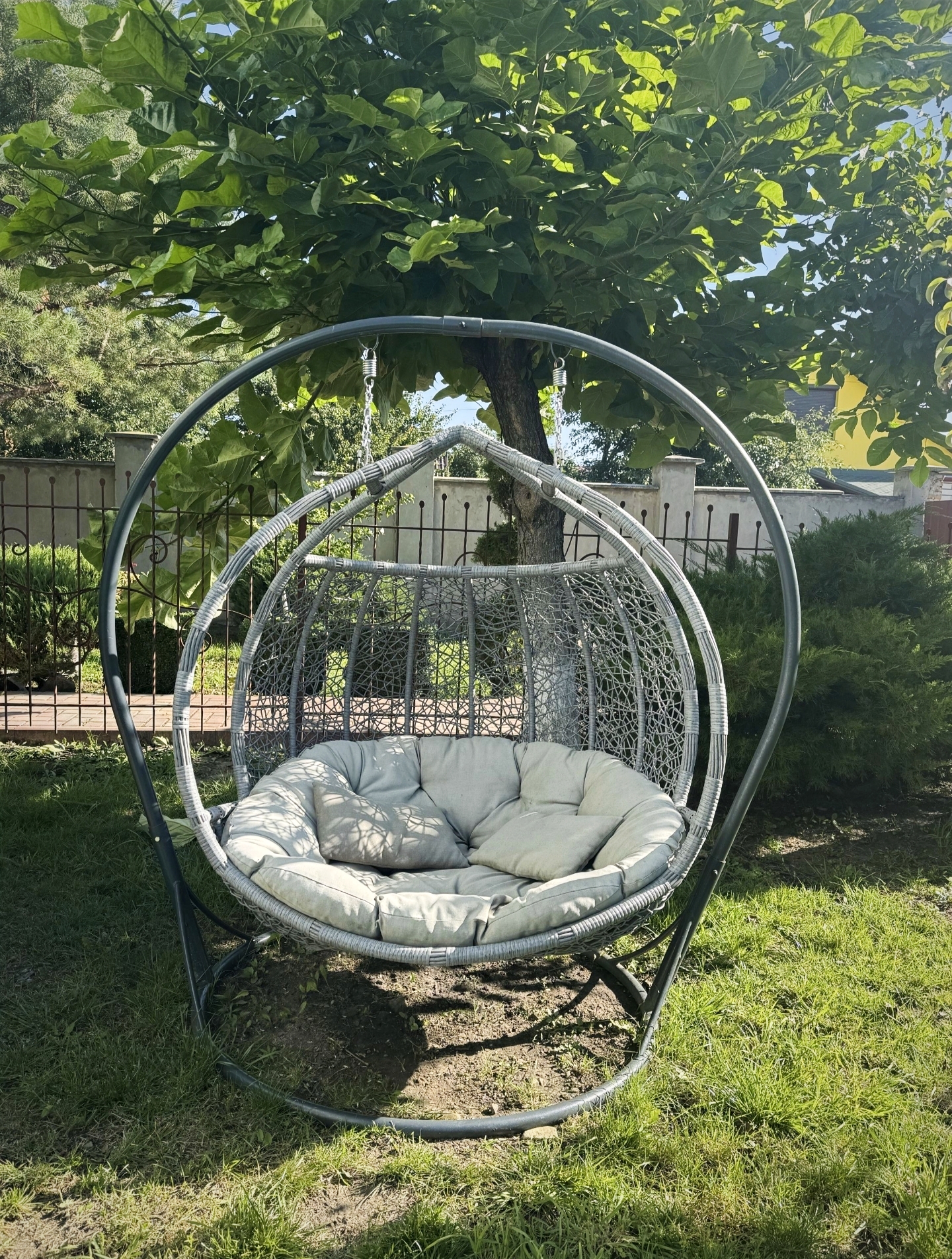 Ідеальна модель підвісного крісла для садової ділянки. На такому кріслі коконі з легкістю помістяться 2 людини.