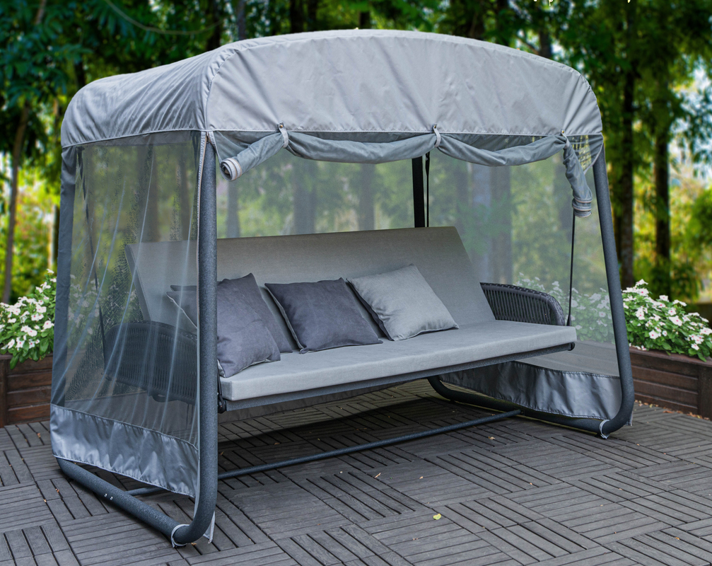 Металеві ланцюги допомагають закріпити крісла гойдалок. У деяких моделей є декоративне обплетення.